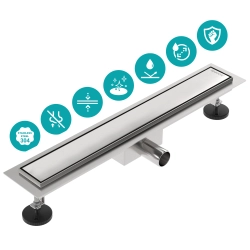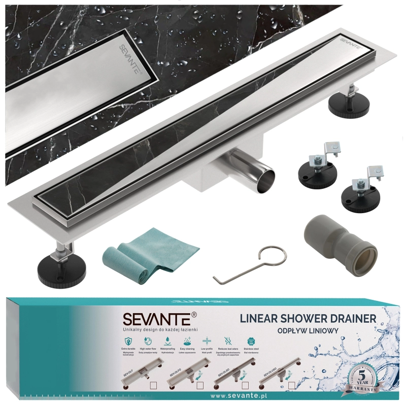Odpływ liniowy OL009 FLAT SEVANTE to eleganckie odwodnienie prysznicowe łączące funkcjonalność z nowoczesnym designem. Wykonany z wysokiej jakości stali nierdzewnej 304, odpływ wyróżnia się minimalistycznym wykończeniem w kolorze inox oraz solidnymi parametrami technicznymi – idealnymi do łazienek typu walk-in i pryszniców bez brodzika.