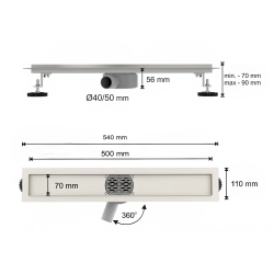 Odpływ liniowy obrotowy 50 cm czarny OL017 FLAT SEVANTE