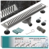 Dzięki obrotowemu syfonowi możliwe jest precyzyjne dopasowanie odpływu do istniejącej instalacji kanalizacyjnej, co znacznie ułatwia montaż. Regulowane nóżki gwarantują stabilne i równe ustawienie, a szerokość maskownicy 7 cm tworzy minimalistyczny efekt, zachowując jednocześnie wysoką wydajność odprowadzania wody.