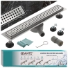 Dzięki obrotowemu syfonowi możliwe jest precyzyjne dopasowanie odpływu do istniejącej instalacji kanalizacyjnej, co znacznie ułatwia montaż. Regulowane nóżki gwarantują stabilne i równe ustawienie, a szerokość maskownicy 7 cm tworzy minimalistyczny efekt, zachowując jednocześnie wysoką wydajność odprowadzania wody.