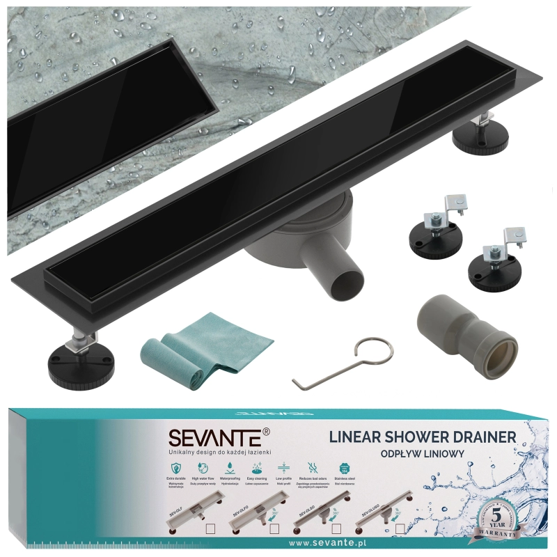 Odpływ liniowy obrotowy 90 cm czarny OL021 FLAT SEVANTE