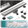 Dzięki obrotowemu syfonowi możliwe jest precyzyjne dopasowanie odpływu do istniejącej instalacji kanalizacyjnej, co znacznie ułatwia montaż. Regulowane nóżki gwarantują stabilne i równe ustawienie, a szerokość maskownicy 7 cm tworzy minimalistyczny efekt, zachowując jednocześnie wysoką wydajność odprowadzania wody.