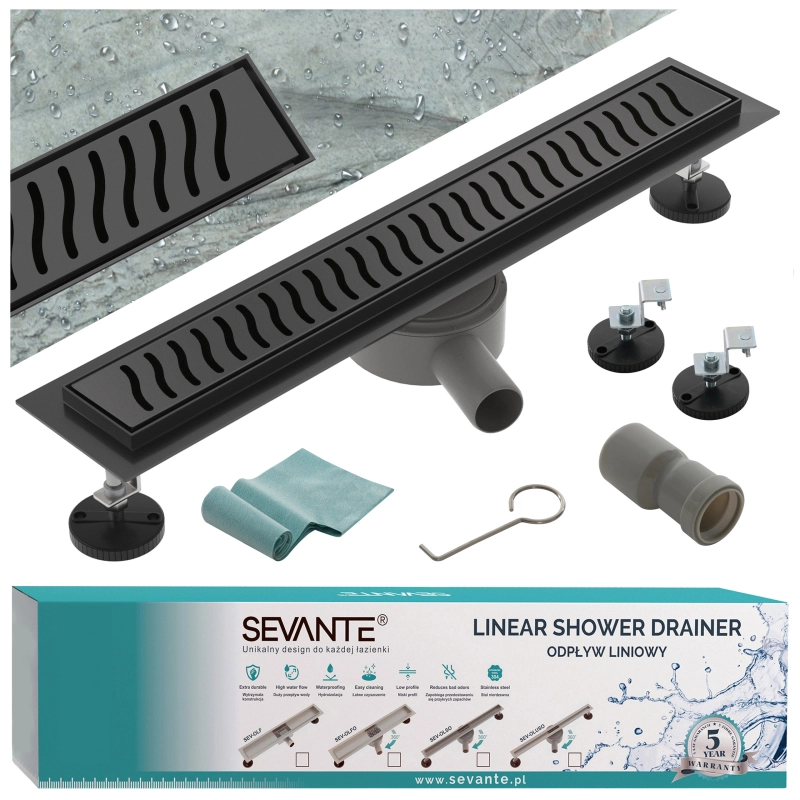 Odpływ liniowy obrotowy 100 cm czarny OL022 FLAT SEVANTE