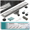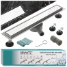 Dzięki obrotowemu syfonowi możliwe jest precyzyjne dopasowanie odpływu do istniejącej instalacji kanalizacyjnej, co znacznie ułatwia montaż. Regulowane nóżki gwarantują stabilne i równe ustawienie, a szerokość maskownicy 7 cm tworzy minimalistyczny efekt, zachowując jednocześnie wysoką wydajność odprowadzania wody.