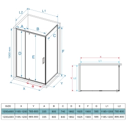 Kabina prysznicowa prostokątna 120x80cm czarna KB171 IBERIS SEVANTE
