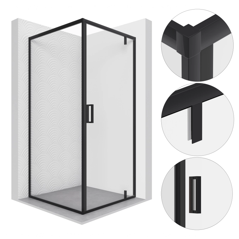 Model oferuje regulację wymiarów (zakres 118,5–120 cm × 88,5–90 cm), montaż narożny (na brodziku lub bezpośrednio na płytkach), drzwi uchylne oraz powłokę Easy2Clean, która ułatwia utrzymanie powierzchni w czystości i poprawia komfort użytkowania.