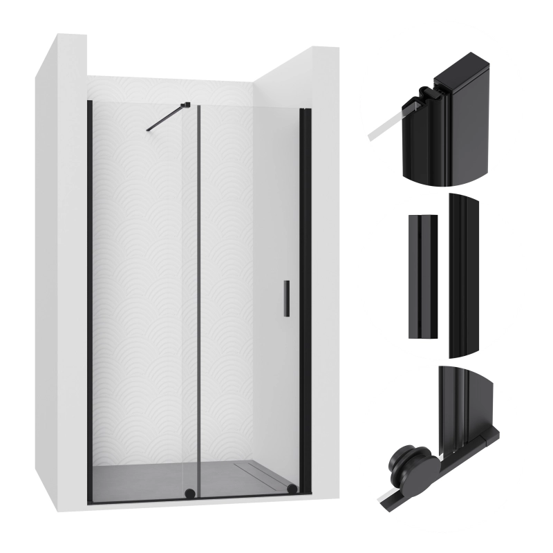 Drzwi prysznicowe do wnęki uchylne 105×190 cm SW106 KALIMERA SEVANTE to nowoczesna propozycja do strefy prysznicowej — czarne profile w zestawieniu z hartowanym szkłem o grubości 6 mm tworzą konstrukcję pełną wyrazistego charakteru.