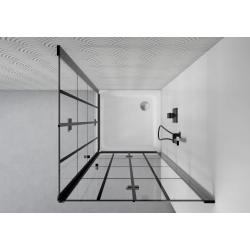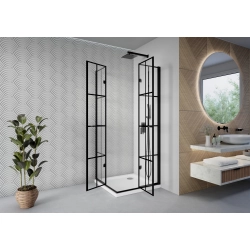 Drzwi składane z zakresem ruchomości 180° zapewniają wygodę użytkowania oraz oszczędność miejsca w łazience. Regulowany zakres wymiarów (88,5-90 x 88,5-90 cm) oraz system niwelacji nierówności ścian gwarantują łatwy montaż nawet w trudnych warunkach technicznych. Uniwersalny montaż narożny daje możliwość instalacji zarówno na brodziku, jak i bezpośrednio na płytkach. Wysokość kabiny wynosząca 190 cm sprawia, że korzystanie z niej jest komfortowe dla każdego domownika. Szprosowy podział szkła w czarnej ramie to idealne rozwiązanie dla osób poszukujących stylowego i funkcjonalnego wyposażenia łazienki o charakterze industrialnym.