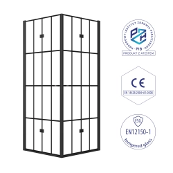 Kabina prysznicowa kwadratowa 90x90cm czarna KB147 MAUNA SEVANTE to propozycja dla osób ceniących nowoczesną estetykę w stylu loft i wygodę użytkowania. Transparentne szkło hartowane o grubości 6 mm z charakterystycznym czarnym podziałem w formie prostokątnych szprosów zapewnia bezpieczeństwo oraz trwałość produktu przez lata. Czarne profile aluminiowe z industrialnym wzorem nadają kabinie elegancki wygląd, który świetnie wpisuje się w aktualne trendy aranżacyjne.