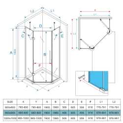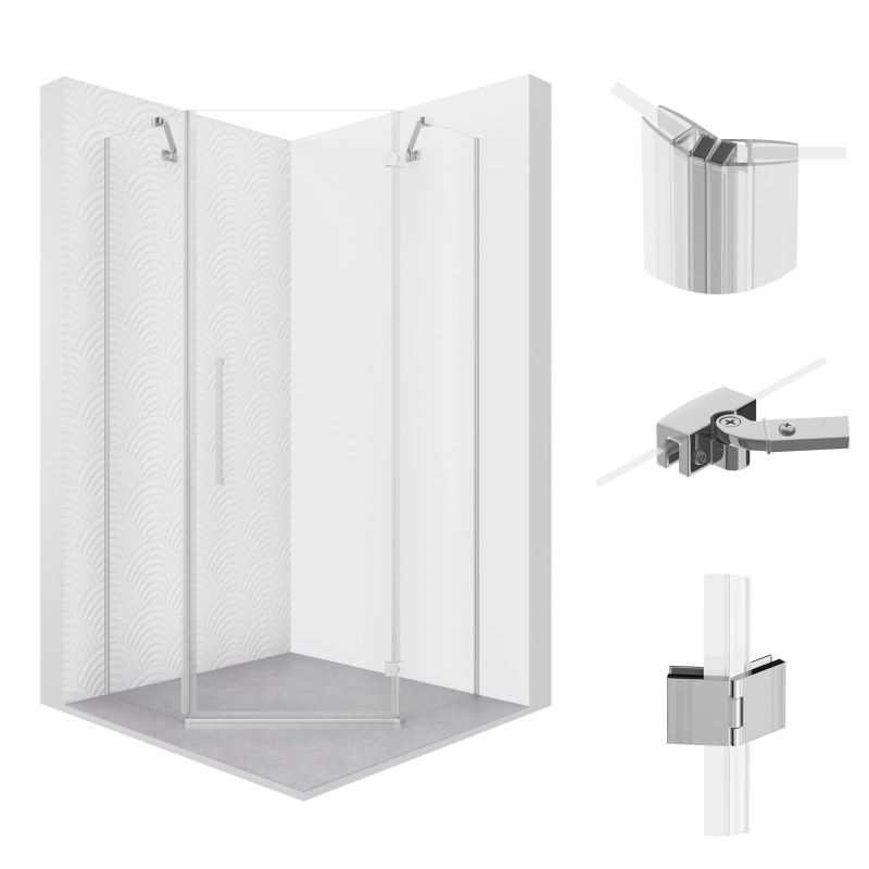 Format 90x90cm w narożnym układzie pięciokątnym gwarantuje przestronną i komfortową strefę kąpieli, a możliwość montażu zarówno na brodziku, jak i bezpośrednio na płytkach sprawia, że kabina sprawdzi się w różnorodnych aranżacjach. Wbudowany system regulacji pozwala z łatwością zniwelować ewentualne nierówności ścian, zapewniając idealnie dopasowane i szczelne osadzenie.