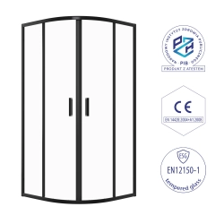 Kabina prysznicowa półokrągła 80x80cm czarna KB08 LANDA SEVANTE to nowoczesne rozwiązanie dla wymagających użytkowników. Eleganckie czarne wykończenie profili aluminiowych w połączeniu z przezroczystym, hartowanym szkłem o grubości 5mm tworzy efektowną kompozycję, która stanie się ozdobą każdej łazienki.