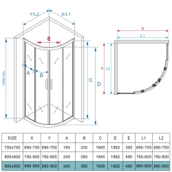 Zakres regulacji (89–90 cm) pozwala na precyzyjne dopasowanie kabiny do narożnika łazienki. Uniwersalny montaż umożliwia instalację zarówno na brodziku, jak i bezpośrednio na płytkach. System przesuwnych drzwi zapewnia płynne działanie oraz wygodę codziennego użytkowania.