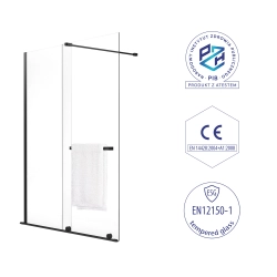 Ścianka prysznicowa walk-in 120x195cm czarna SP42 ERIS SEVANTE to eleganckie rozwiązanie dla przestronnych łazienek. Czarne wykończenie profili aluminiowych nadaje ściance nowoczesny i wyrazisty charakter, idealnie wpisujący się w aktualne trendy wnętrzarskie. Wykonana z hartowanego szkła o grubości 8 mm, zapewnia najwyższy poziom bezpieczeństwa i trwałości.
