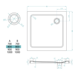 • Średnica odpływu: 90 mm