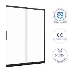 Hartowane szkło o grubości 4 i 5 mm gwarantuje trwałość i bezpieczeństwo użytkowania, a transparentna powierzchnia optycznie powiększa przestrzeń pomieszczenia. Czarny profil aluminiowy podkreśla nowoczesny charakter produktu, doskonale komponując się z industrialnymi lub minimalistycznymi wnętrzami. Powłoka NANO Easy2Clean minimalizuje osadzanie się zabrudzeń i kamienia, co pozwala zaoszczędzić czas podczas sprzątania. Uniwersalny montaż prawo/lewo oraz możliwość niwelacji nierówności ściany sprawiają, że instalacja jest szybka i intuicyjna.