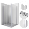 Czarna rama wykonana z wysokiej jakości aluminium podkreśla nowoczesny charakter kabiny. System przesuwnych drzwi z ergonomicznym uchwytem zapewnia wygodny dostęp. Precyzyjny zakres regulacji 98,5-99,5x88,5-89,5 cm oraz wysokość 190 cm tworzą funkcjonalną przestrzeń. Uniwersalny montaż narożny z możliwością instalacji na brodziku lub bezpośrednio na płytkach, w połączeniu z systemem niwelacji nierówności ściany, gwarantuje stabilność i wszechstronność zastosowania.