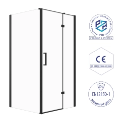 Uniwersalny montaż narożny oraz możliwość instalacji na brodziku lub bezpośrednio na płytkach zapewnia wszechstronne możliwości aranżacyjne. Precyzyjny zakres regulacji 98,5-100 x 78,5-80 cm oraz system niwelacji nierówności ściany gwarantują idealne dopasowanie. Drzwi uchylne z zakresem ruchomości 180° zapewniają wygodny dostęp, a wysokość 190 cm komfortowe użytkowanie. Aluminiowy profil oraz ergonomiczny uchwyt w komplecie dopełniają całości, tworząc produkt premium.