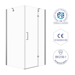 System drzwi uchylnych z zakresem ruchomości 180° gwarantuje wygodne korzystanie z kabiny. Precyzyjnie dopracowane wymiary (98,5-100 x 78,5-80 cm) oraz możliwość niwelacji nierówności ściany zapewniają idealne dopasowanie do przestrzeni. Uniwersalny montaż narożny pozwala na instalację zarówno na brodziku, jak i bezpośrednio na płytkach. Wysokość 190 cm oraz transparentne szkło optycznie powiększają przestrzeń, tworząc komfortowe warunki podczas codziennego użytkowania.