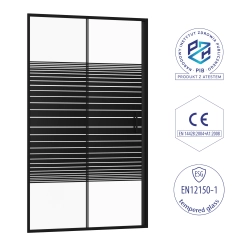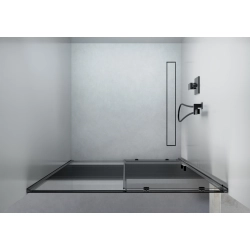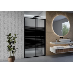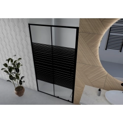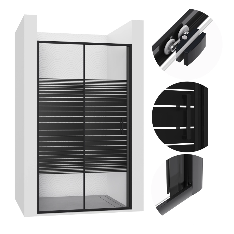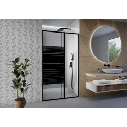 Drzwi prysznicowe do wnęki przesuwne 95x190cm czarne SW84 MERAPI SEVANTE wprowadzają do Twojej łazienki nutę industrialnej elegancji. Przezroczyste szkło hartowane o grubości 5mm z czarnymi pasami tworzy harmonijną całość z aluminiowym profilem w czarnym wykończeniu. Innowacyjna powłoka NANO Easy2Clean skutecznie chroni szkło przed osadzaniem się kamienia i znacząco ułatwia utrzymanie czystości.