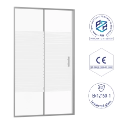 Drzwi prysznicowe do wnęki przesuwne 110x190cm chrom SW56 MERAPI SEVANTE to synonim elegancji i funkcjonalności. Chromowane wykończenie profilu aluminiowego w połączeniu z białymi pasami na hartowanym szkle o grubości 5mm tworzy ponadczasową kompozycję. Innowacyjna powłoka NANO Easy2Clean skutecznie zabezpiecza powierzchnię przed osadzaniem się kamienia i ułatwia codzienne czyszczenie.