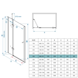 Przemyślana konstrukcja uchylna zapewnia wygodne wejście do kabiny, a zakres regulacji 1,5 cm skutecznie niweluje ewentualne nierówności ścian. Wysokość 190 cm gwarantuje komfortowe użytkowanie nawet wysokim osobom. Drzwi wyposażone są w praktyczny uchwyt, a montaż profilu prostopadle do ściany zapewnia stabilność i trwałość konstrukcji.