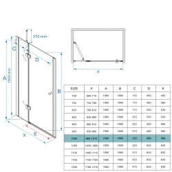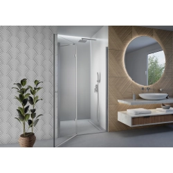 Regulowany zakres montażowy 98-101 cm oraz dodatkowe 1,5 cm regulacji w profilu umożliwiają precyzyjne dopasowanie. Wysokość 190 cm i transparentne szkło zapewniają komfortową przestrzeń kąpielową. System uchylny z praktycznym uchwytem w komplecie oraz możliwość niwelacji nierówności ściany sprawiają, że użytkowanie i montaż są niezwykle wygodne.