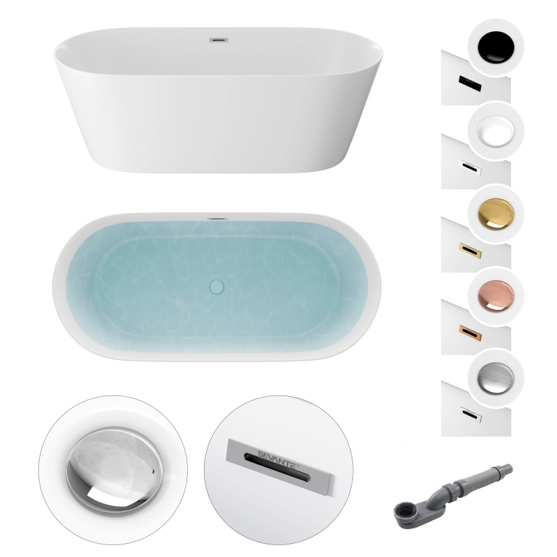 Wanna wolnostojąca owalna z syfonem FORNALUX WW06 SEVANTE to wyraz luksusowego designu i nowoczesności w każdej łazience. Jej imponujące wymiary 180×80 cm przy wysokości 56 cm oraz pojemność 352 l zapewniają niezrównany komfort kąpieli.