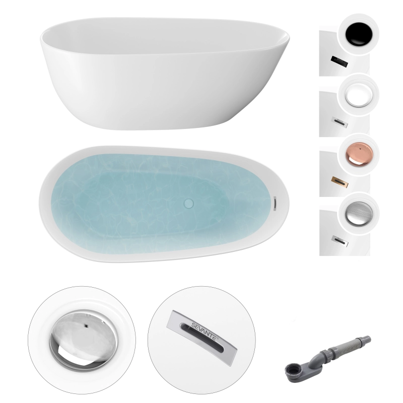 Wanna wolnostojąca owalna z syfonem SARANDA WW07 SEVANTE to harmonijne połączenie elegancji i nowoczesnego komfortu. Jej przestronne wymiary (180×85 cm, wysokość 55 cm) oraz pojemność 311 l zapewniają niezrównane warunki do relaksującej kąpieli.