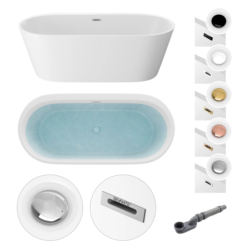 Wanna wolnostojąca owalna z syfonem APULIA WW08 SEVANTE to połączenie elegancji i nowoczesnej formy, które dodaje wyjątkowego charakteru każdej łazience. Jej zgrabne wymiary (170×75 cm, wysokość 56 cm) i pojemność 272 l stwarzają idealne warunki do relaksujących kąpieli.