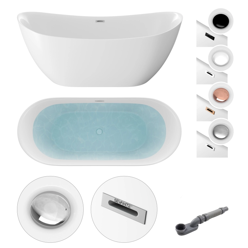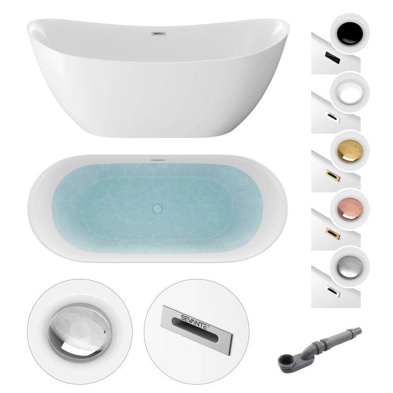 Wanna wolnostojąca owalna ATOL WW21 SEVANTE łączy nowoczesną elegancję z komfortem użytkowania, wprowadzając wyjątkowy akcent luksusu do każdej łazienki. Wysoka konstrukcja oraz pojemność 281 l zapewniają pełne zanurzenie i relaks podczas kąpieli.