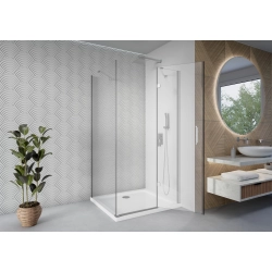 Drzwi uchylne o kącie 180° gwarantują wygodę. Wysokość 190 cm zapewnia komfort. Montaż narożny możliwy w układzie z brodzikiem lub bez, z profilem niwelującym nierówności i pełnym zestawem montażowym.