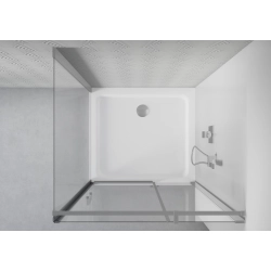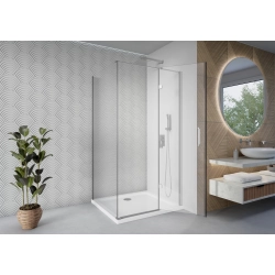 Drzwi przesuwne działają płynnie dzięki solidnym dolnym rolkom, a wysokość 190 cm zapewnia komfort. Montaż narożny jest możliwy zarówno na brodziku, jak i bezpośrednio na płytkach, a profil niwelujący nierówności ściany zapewnia szczelność i stabilność konstrukcji.