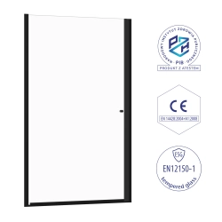 Drzwi prysznicowe do wnęki uchylne SW93 GUNTUR SEVANTE 95×190 cm to propozycja łącząca przestronność i minimalistyczny design. Czarne profile, hartowane szkło 6 mm z powłoką Easy2Clean, oferują trwałość i łatwe utrzymanie w czystości. Regulacja otworu montażowego w zakresie 93–96 cm, z zakresem regulacji szyby 3 cm. Montaż można wykonać na brodziku lub na podłodze, co daje elastyczne możliwości aranżacyjne. System uchylny dba o wygodę codziennego użytkowania, a profil kompensujący nierówności zapewnia konstrukcyjnie stabilne i szczelne osadzenie drzwi.