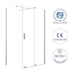 Regulacja konstrukcji (zakres 98,5-100 × 78,5-80 cm), montaż uniwersalny (na brodziku lub bezpośrednio na płytkach) oraz powłoka Easy2Clean ułatwiająca czyszczenie czynią użytkowanie wygodnym. Drzwi przesuwne i konstrukcja narożna zwiększają elastyczność montażu.