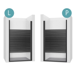 Drzwi prysznicowe uchylne 85×190 cm SW100 GUNTUR SEVANTE w czarnym wykończeniu z dekoracyjnymi pasami to stylowe rozwiązanie do wnęk prysznicowych. Transparentne szkło hartowane o grubości 6 mm oraz czarne profile nadają całości nowoczesny i elegancki charakter.