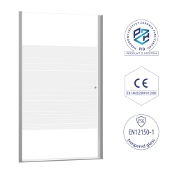Drzwi prysznicowe do wnęki uchylne 90×190 cm chrom z pasami SW104 SAKURA SEVANTE to elegancka opcja do wnęk prysznicowych. Transparentne szkło hartowane o grubości 6 mm w połączeniu z chromowanym profilem oraz dekoracyjnymi pasami nadaje całości nowoczesny i stylowy charakter.