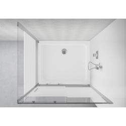 Model oferuje regulację wymiarów (zakres 99 × 69 do 100 × 70 cm), montaż narożny (na brodziku lub bezpośrednio na płytkach), drzwi przesuwne oraz powłokę Easy2Clean, która znacznie ułatwia czyszczenie powierzchni.