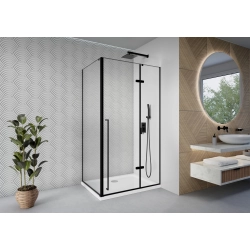 KB156 ILEX SEVANTE – kabina prysznicowa prostokątna 90×80 cm w czarnym wykończeniu to nowoczesna propozycja dla osób ceniących elegancję i funkcjonalność w swojej łazience. Transparentne szkło hartowane o grubości 5 mm w połączeniu z czarnymi profilami aluminiowymi tworzy spójną i stylową całość.