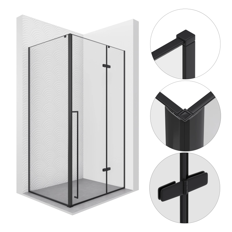 Model oferuje regulację wymiarów (zakres 118,5–120 cm × 78,5–80 cm), montaż narożny (na brodziku lub bezpośrednio na płytkach), drzwi uchylne oraz powłokę Easy2Clean, która ułatwia utrzymanie powierzchni w czystości i poprawia komfort użytkowania.