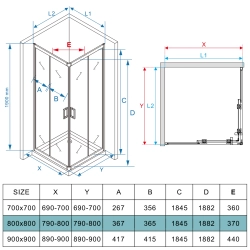 Model oferuje regulację (79–80 × 79–80 cm), montaż narożny zarówno na brodziku, jak i na płytkach, drzwi przesuwne oraz powłokę Easy2Clean, która ułatwia utrzymanie czystości, podnosząc komfort codziennego użytkowania.