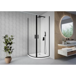 Kabina prysznicowa półokrągła 80×80 cm KB109 CEFALU SEVANTE w czarnym wykończeniu to stylowa propozycja do kompaktowych łazienek. Hartowane szkło o grubości 6 mm zestawione z czarnymi profilami tworzy lekką, ale solidną konstrukcję.