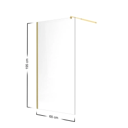 Ścianka prysznicowa walk-in 60×195 cm SP09 COLIMA od SEVANTE to elegancka i nowoczesna propozycja do minimalistycznych łazienek. Przezroczyste, hartowane szkło w połączeniu ze złotym wykończeniem profili aluminiowych nadaje kabinie lekki i luksusowy charakter, doskonale wpisując się w aktualne trendy wnętrzarskie.