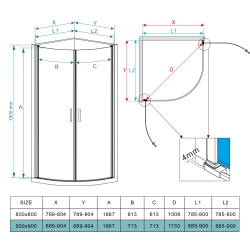 Model posiada regulację (zakres 88,5-90 cm w obu osiach), umożliwia montaż narożny – z opcją na brodziku lub bezpośrednio na płytkach, a drzwi uchylne ułatwiają dostęp. Powłoka Easy2Clean sprzyja utrzymaniu powierzchni w czystości, podnosząc komfort codziennego użytkowania.