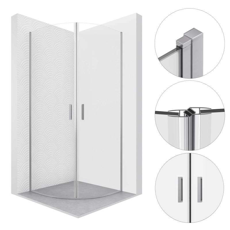 Kabina prysznicowa półokrągła 80×80 cm KB107 CEFALU SEVANTE w chromowanym wykończeniu to nowoczesna propozycja do łazienek o kompaktowej powierzchni, łącząca funkcjonalność z elegancją. Przezroczyste szkło hartowane o grubości 6 mm w połączeniu z chromowanymi profilami nadaje konstrukcji lekkości i nowoczesnego charakteru.