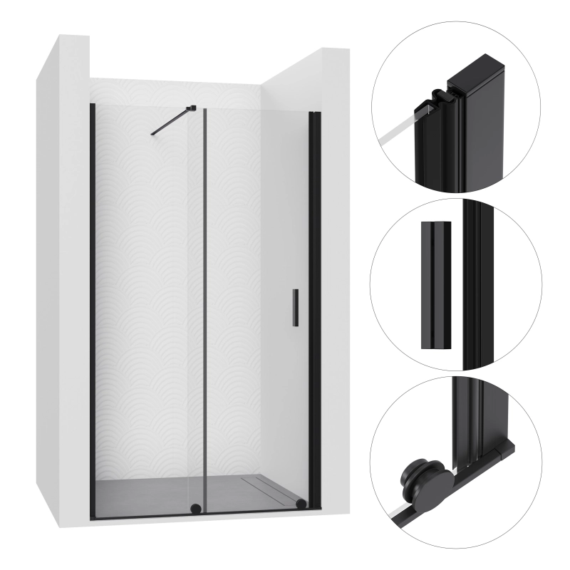 Kabina prysznicowa do wnęki uchylna 115×190 cm SW108 KALIMERA SEVANTE to stylowe rozwiązanie, które idealnie wpasuje się w przestronniejsze łazienki. Czarne profile zestawiono ze szkłem hartowanym o grubości 6 mm, co nadaje konstrukcji wyrazisty, nowoczesny charakter.
