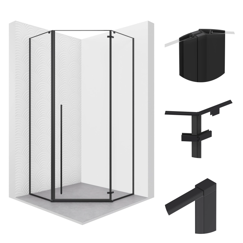 Kabina prysznicowa pięciokątna 80×80 cm KB121 CAPRI SEVANTE to elegancka propozycja do mniejszych łazienek, łącząca nowoczesną formę z solidnym wykonaniem. Przezroczyste szkło hartowane o grubości 6 mm, oprawione w czarne profile aluminiowe, nadaje konstrukcji lekkości i współczesnego charakteru. Model oferuje regulowany zakres montażowy (ok. 78,5–80 cm), co pozwala dopasować kabinę do konkretnej wnęki lub narożnika. Można ją montować zarówno na brodziku, jak i bezpośrednio na posadzce. Uchylne drzwi ułatwiają wygodne korzystanie, a powłoka Easy2Clean ogranicza osadzanie się kamienia i sprawia, że codzienne czyszczenie jest znacznie prostsze.