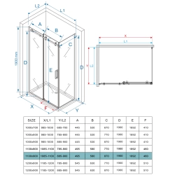 Dzięki wymiarom 110×90 cm strefa prysznicowa zapewnia komfort i swobodę ruchu — idealna zarówno do codziennych kąpieli, jak i relaksujących chwil pod prysznicem. Montaż narożny możliwy jest zarówno na brodziku, jak i bezpośrednio na płytkach, a regulacja przy montażu i możliwość dopasowania do ewentualnych nierówności ściany gwarantują łatwe dostosowanie do warunków w łazience. Solidna konstrukcja i przesuwne drzwi zapewniają wygodę użytkowania oraz trwałość na lata.