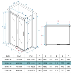 Dzięki wymiarom 90×100 cm kabina zapewnia komfortową przestrzeń prysznicową, co zwiększa wygodę codziennego użytkowania. Montaż narożny jest możliwy zarówno na brodziku, jak i bezpośrednio na płytkach; regulacja wymiarów przy instalacji oraz opcja niwelacji nierówności ściany zapewniają łatwe dopasowanie do warunków montażowych. Stabilna konstrukcja i dobrze dobrany system drzwi gwarantują trwałość i wygodę użytkowania przez lata.