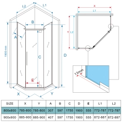 Zewnętrzne wymiary 80×80 cm (z możliwością regulacji przy montażu) oraz wysokość 190 cm zapewniają wygodę użytkowania i komfort nawet w mniejszych łazienkach. Montaż narożny możliwy zarówno na brodziku, jak i bezpośrednio na płytkach, w połączeniu z opcją wyrównania ewentualnych nierówności ścian, daje dużą elastyczność podczas instalacji. Solidna konstrukcja i dopasowany system drzwi gwarantują stabilność i trwałość na lata.