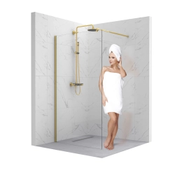 Ścianka prysznicowa walk-in 100×195 cm SP13 COLIMA od SEVANTE to eleganckie i nowoczesne rozwiązanie do przestronnych, stylowych łazienek. Przezroczyste, hartowane szkło w połączeniu ze złotym wykończeniem profili aluminiowych nadaje całości lekki, a jednocześnie luksusowy charakter, doskonale wpisujący się w aktualne trendy aranżacyjne.